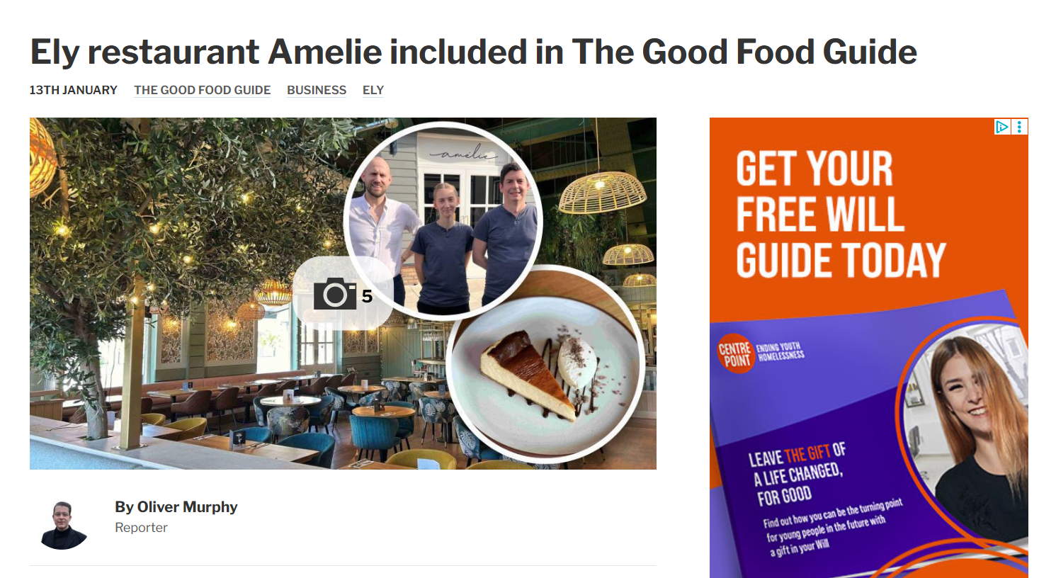 “Another Suffolk-based business - Amelie Restaurants - run by entrepreneurial father-and-son chefs Regis and Alex Crepy - signed the lease on units at independent retail village, Ben’s Yard, on the Stuntney Estate, near Ely.” -